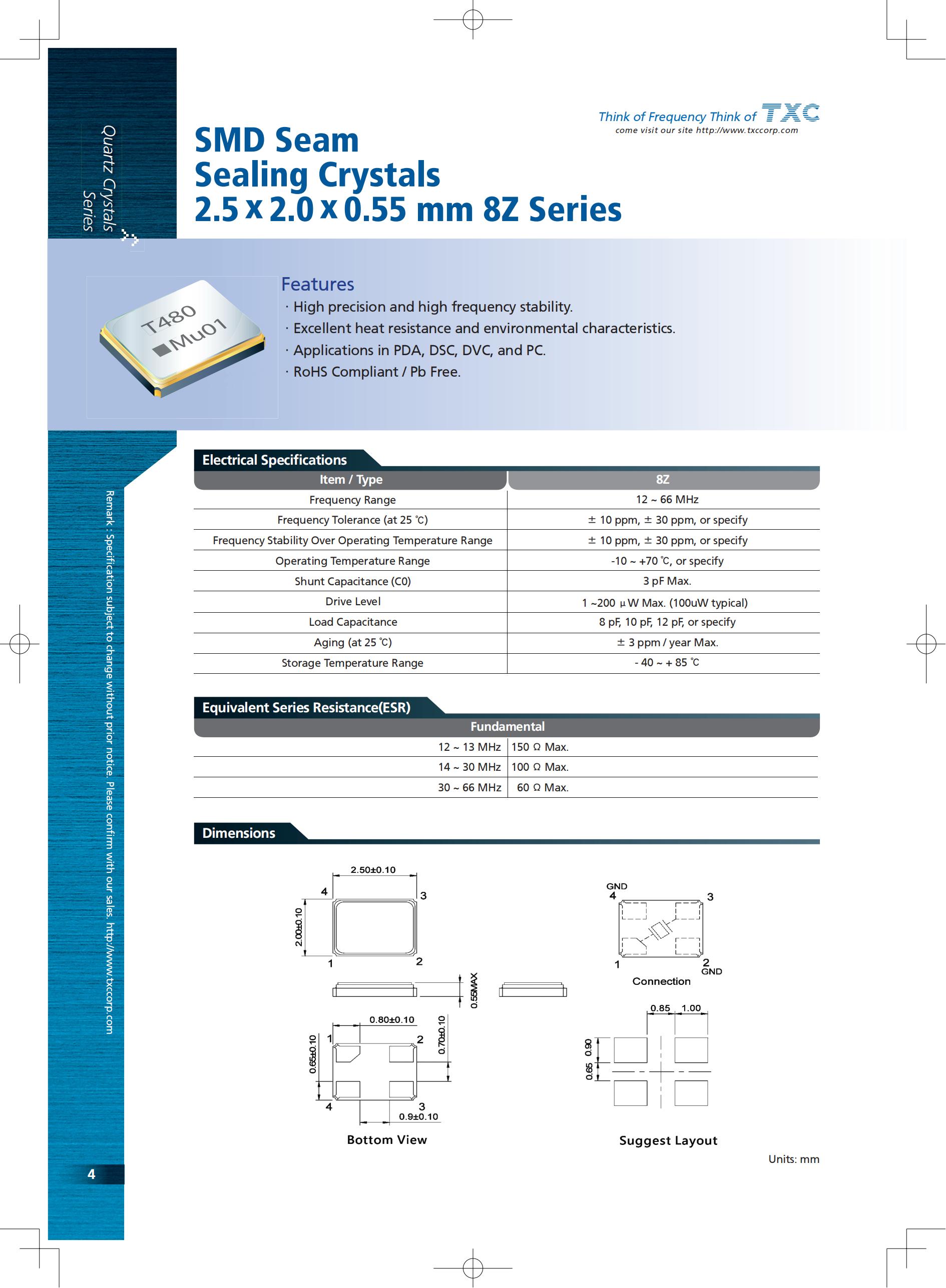 SMD Seam Sealing Crystals 8Z Series
